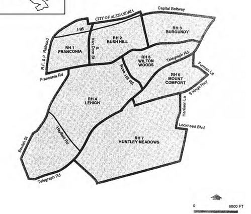 Pictured below, RH2 encompasses the area north of Franconia Road across from the shopping center. RH4 is the area of the shopping center and west of Rose Hill Drive and RH5 includes the area east of Rose Hill Drive.