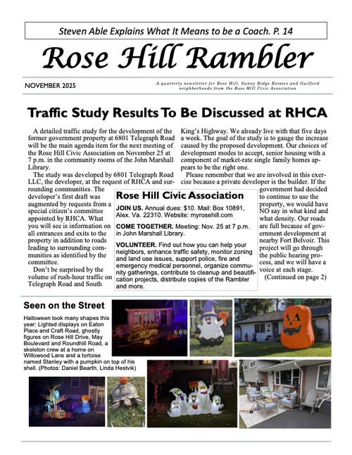 The Rambler is the Rose Hill Civic Association newsletter. A printed newsletter is delivered to all of our Rose Hill neighbors quarterly. Electronic newsletters and information are sent via email on an as needed basis. You can find an archive of past Ramblers below, and we post a copy of the Rambler's quarterly featured article on the home page of this website. To join our email list please click below.